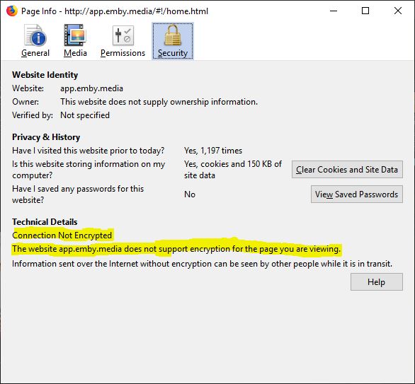 CChris 59 Posted February 25, 2019 Posted February 25, 2019 basically, the page "app.emby.media" is not ssl secured.But this is not based to your server-settings, since it is not your server...this page is part of the "emby.media" domain... and using your "community" login to connect to your profile - where you can then - select your server.This part should be secured if you have enabled ssl and using a valid certificate for your browser. But since the Address is still pointed to app.emby.media the browser is showing an unsecure connection.That's what I understood after realizing, that there is such an option^^