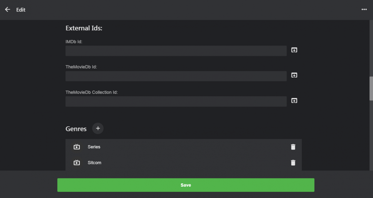 slupmada 0 Posted March 13, 2019 Author Posted March 13, 2019 Sure. For example, I have a series folder for Superstore, and it only has one episode in the folder (superstore_folder.png). Emby detects this file as a movie, does not provide a TVDBId field (superstore_editMetadata.png) and does not pull in any wallart (superstore_emby). I've noticed that if the series folder has more than one episode in the same folder, Emby would then detect it as a series and work properly. Am I still naming something incorrectly? Thanks!