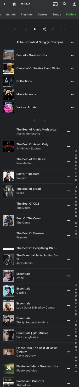 mrfragger 39 Posted June 14, 2019 Posted June 14, 2019 Lemme show you with screenshots. Perhaps I just need to change my metadata then it’ll sort the way I wish. For instance instead of Essentials / Avicii I should change to Avicii / Essentials 2nd screenshot shows from iOS app Neutron and I can quickly locate the artists and it’s truly a folder name based view.