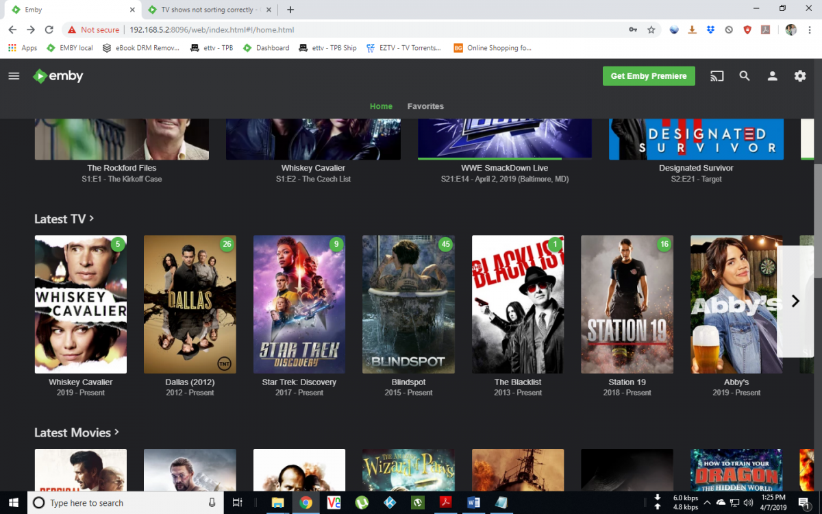 weaselbran 0 Posted April 10, 2019 Author Posted April 10, 2019 Apparently I shouldn't have mentioned that the files get moved to the front of the latest TV category. This issue is an arbitrary loss of TV episodes within EMBY. This past Friday, it sorted Hawaii Five-0's new episode. The file was moved to the correct location, no .nfo file was created and the episode was not listed in EMBY. Furthermore, the last 2 episodes that were listed dissapeared from EMBY. I attempted multiple times to remove the files and get EMBY to see the episodes again. The only way I successfully got EMBY to see the episodes was to remove all database info files except the video files themselves and move the entire show to a different hard drive and perform a library scan. Although this fix did apparently work for this show, the fix has been different each time it loses episodes. Now it has decided to lose episodes from a different show. It seems to be randomly progressing through all of the shows slowly.