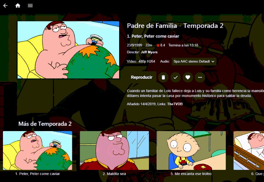 Enrique1980 4 Posted April 15, 2019 Author Posted April 15, 2019 Exactly what appears in the image of "Happy2Play". I have attached 3 images: In the first file (FamilyGuy.jpg) you can see a series with 17 seasons. I only have two and the other 15 do not appear as "missing". Into the second season do not appear as "missing" the episodes I don't have. In the second and third images you can see the options of my user and the library. They have been showing for a long time, but not now. But I do not know since when. Thanks PS: Sorry if my english is poor