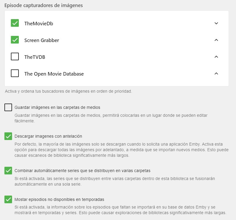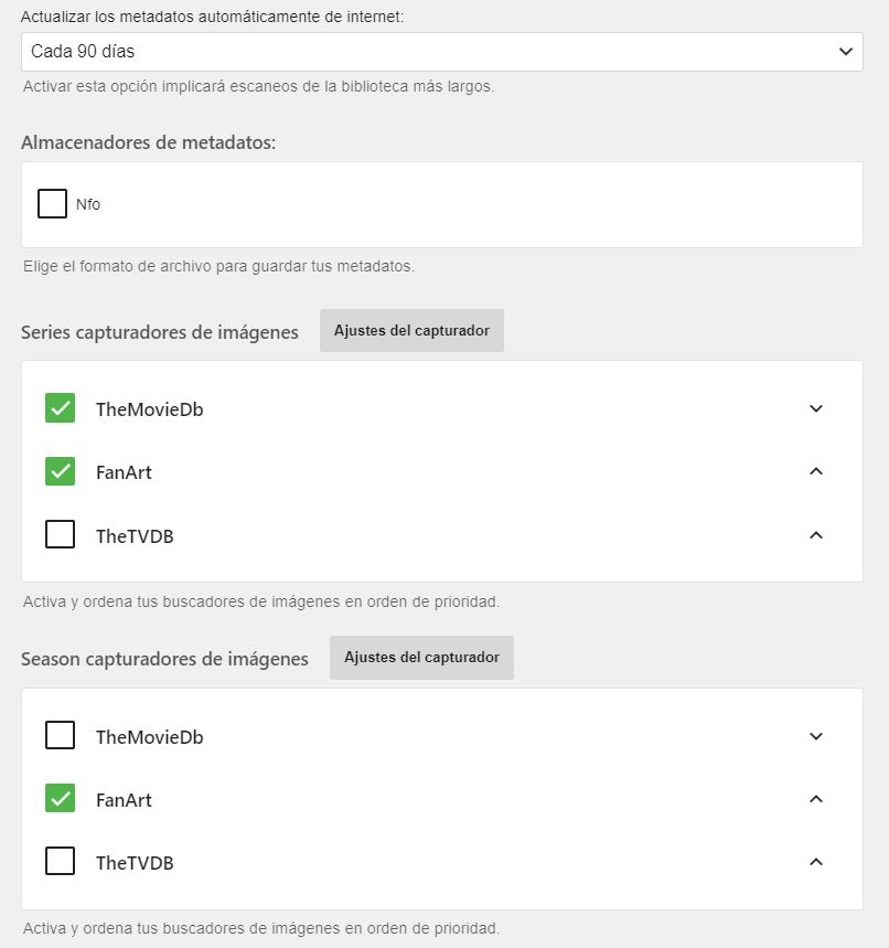 Enrique1980 4 Posted April 15, 2019 Author Posted April 15, 2019 "Did you try running a library scan after turning it on?" -->Yes, both options are enabled since I added the library after installing the server on my QNAP NAS. "Have you enabled internet metadata features for your tv library?" --> I've attached severals images with the options of the library (i'm sorry, in spanish)