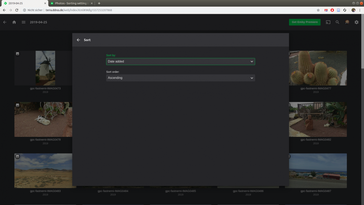 fgebhart 0 Posted May 5, 2019 Posted May 5, 2019 Hi, I use Emby to mange all my photos. The prefered sort order critera is EXIF creation date. This seems to work in the overview. But when clicking on a photo and navigating through the slideshow, the order inside of the slideshow is not correct. So when I go to the next Picture in the slideshow it is not the one which was showen in the overview as next picture. Is it possible to fix this? Regards