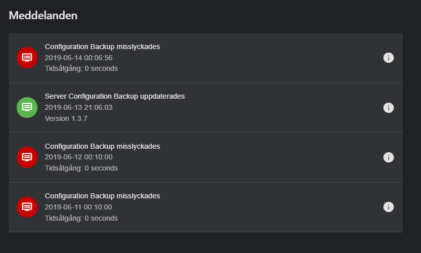 NikeSwe 122 Posted June 13, 2019 Posted June 13, 2019 (edited) Also seeing this. Running latest beta. Notification says this: Emby Backup trial has expired. Please purchase Emby Premiere at https://emby.media. at MBBackup.ServerEntryPoint.ExecuteBackup(BackupProfile settings, CancellationToken cancellationToken, IProgress`1 progress, Boolean isAuto) at MBBackup.Entities.ScheduledBackupTask.Execute(CancellationToken cancellationToken, IProgress`1 progress) at Emby.Server.Implementations.ScheduledTasks.ScheduledTaskWorker.ExecuteInternal(TaskOptions options) (it has not expired) Getting it almost every night. Running manual works sometimes, sometimes not. Got update just now. First manual backup after update, same failed message. Followed up with another try, no error message. Edited June 13, 2019 by NikeSwe
