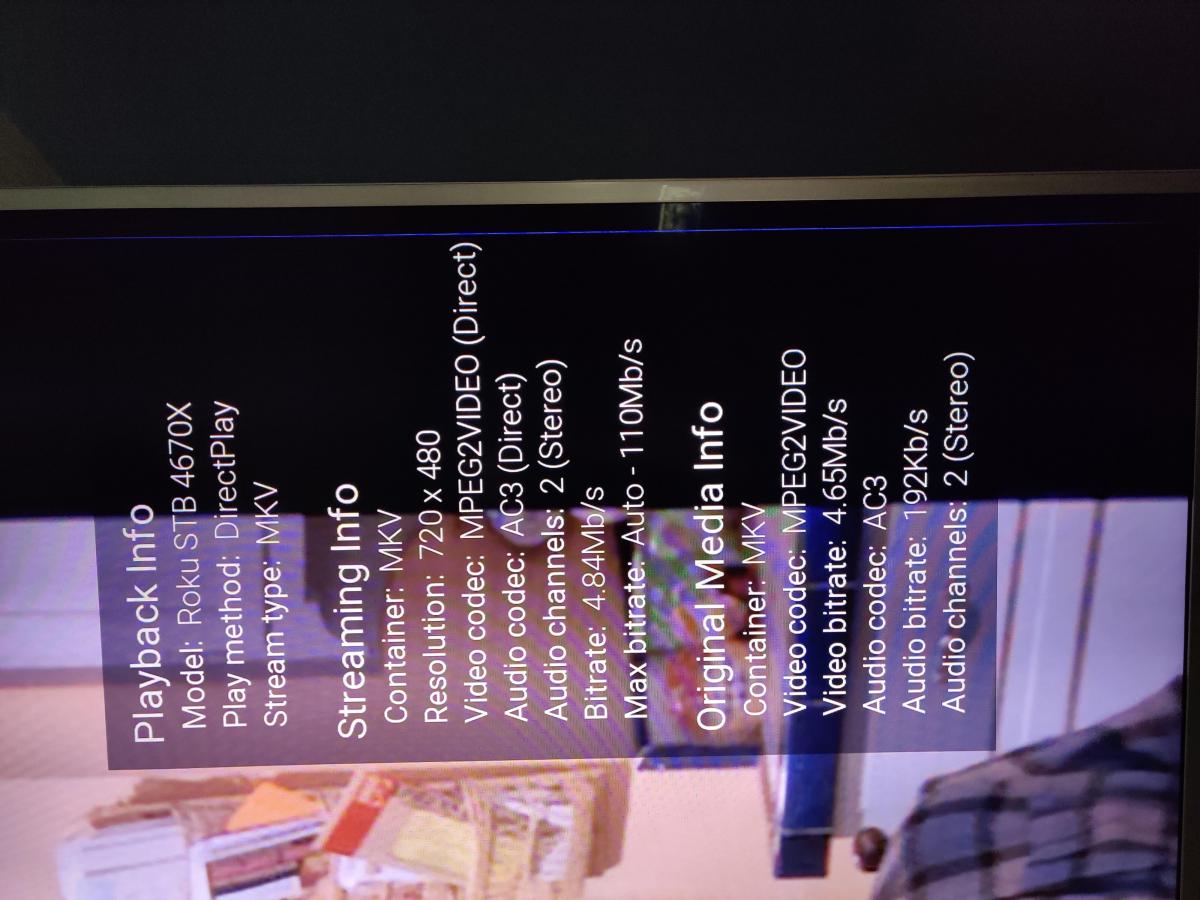 speechles 2055 Posted May 18, 2020 Posted May 18, 2020 (edited) Does the stats for nerds on the Roku app show these files as DirectPlay? I am guessing here that it is either DirectStream, Remux, or Transcode shown. Can you show us the media information from the bottom of the web app for one of the items? We can also tell some things from the stats for nerds of the Roku app. Seeing both a picture of the stats for nerds of the Roku app and a screen shot of the media information from the web app will help tremendously in solving your issue. As well as any ffmpeg log created from that session. Edited May 18, 2020 by speechles
