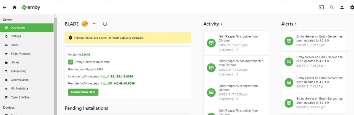Happy2Play 9780 Posted August 8, 2019 Posted August 8, 2019 Most of the time it is the browser itself that is holding the system folder open so the upgrade can not happen (especially if you are on localhost:port). Closing the browser or just the Emby tab and restarting from system tray should work or close the tab once you hit restart on the Dashboard.