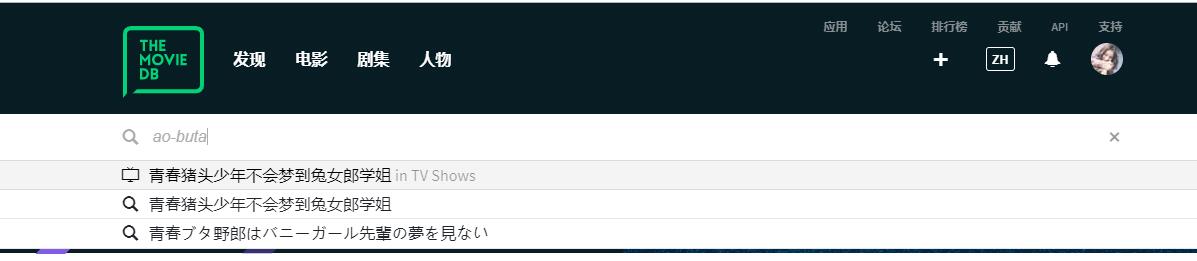 Happy2Play 9785 Posted August 22, 2019 Posted August 22, 2019 Because Emby is not parsing anything out of the name provided.. So it will look at the name provided "[青春猪头少年不会梦到兔女郎学姐] Ao-buta" and search. 2019-08-22 14:56:36.878 Info App: MovieDbProvider: Finding id for item: [青春猪头少年不会梦到兔女郎学姐] Ao-buta 2019-08-22 14:56:36.887 Info HttpClient: GET https://api.themoviedb.org/3/search/tv?api_key=f6bd687ffa63cd282b6ff2c6877f2669&query=%5B%E9%9D%92%E6%98%A5%E7%8C%AA%E5%A4%B4%E5%B0%91%E5%B9%B4%E4%B8%8D%E4%BC%9A%E6%A2%A6%E5%88%B0%E5%85%94%E5%A5%B3%E9%83%8E%E5%AD%A6%E5%A7%90%5D+Ao-buta&language=zh-cn 2019-08-22 14:56:37.187 Info HttpClient: GET https://api.themoviedb.org/3/search/tv?api_key=f6bd687ffa63cd282b6ff2c6877f2669&query=%5B%E9%9D%92%E6%98%A5%E7%8C%AA%E5%A4%B4%E5%B0%91%E5%B9%B4%E4%B8%8D%E4%BC%9A%E6%A2%A6%E5%88%B0%E5%85%94%E5%A5%B3%E9%83%8E%E5%AD%A6%E5%A7%90%5D+Ao-buta&language=en vs Manual search 2019-08-22 14:58:53.323 Info HttpServer: HTTP POST http://localhost:8096/emby/Items/RemoteSearch/Series. UserAgent: Mozilla/5.0 (Windows NT 10.0; Win64; x64) AppleWebKit/537.36 (KHTML, like Gecko) Chrome/76.0.3809.100 Safari/537.36 2019-08-22 14:58:53.419 Info App: MovieDbProvider: Finding id for item: Ao-buta 2019-08-22 14:58:53.419 Info HttpClient: GET https://api.themoviedb.org/3/search/tv?api_key=f6bd687ffa63cd282b6ff2c6877f2669&query=Ao-buta&language=zh-cn