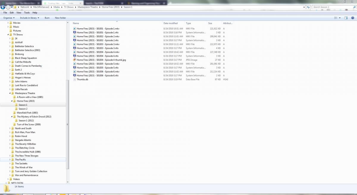 martincom 25 Posted August 24, 2019 Posted August 24, 2019 I'm having an issue where Emby is ignoring the year and applying the wrong descriptions/overview to episodes as well as posting the incorrect year for the series. It appears to be just one series in particular, "Home Fires", I'm having an issue with. There are two different series with same name. The series I have stored on my server was produced in 2015 and "thetvdb.org" differentiates by applying the production year to the later one "Home Fires (2015)". I've even added the year to the episodes, but it still pulls inof for the same titled series produced in 1992. See the attached screen shot for the directory/file naming structure. What am I doing wrong?