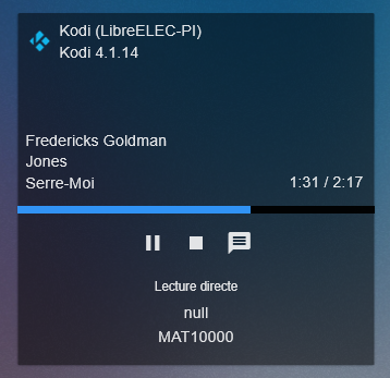 mat10000 0 Posted October 12, 2019 Author Posted October 12, 2019 When I use the Android remote to launch music on KODI (raspberry or windows), I have no problem either. The problem is only there when I start audio playback from Kodi.