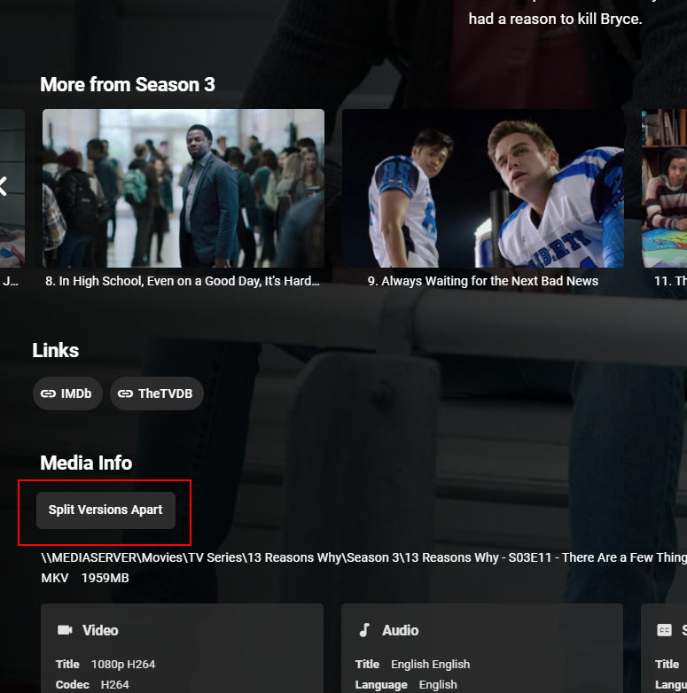 Happy2Play 9782 Posted December 19, 2020 Posted December 19, 2020 51 minutes ago, HKWang said: Can you explain where it's at? I accidentally grouped multiple episodes of a TV show and now cannot see them in the library. Just above the Media Info section of the item.