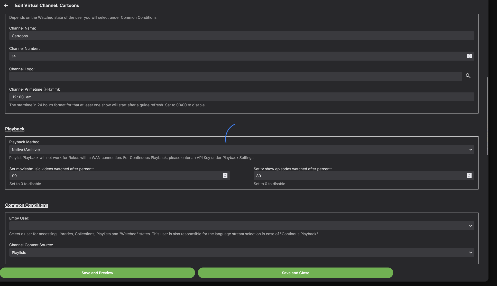pünktchen 1409 Posted November 16, 2025 Author Posted November 16, 2025 On 11/11/2025 at 9:19 PM, strichmo said: And is it safe to use an admin user there? That's okay, but keep in mind that the users who will be playing the channel will also need access to the Emby library that will provide the videos. On 11/11/2025 at 9:19 PM, strichmo said: And can't we have watched state based on what user the client is? If you mean the same channel will be used by different users but the watched state should be respected for each of them, then you have to duplicate the channel, enable the channels only for one selected user (General) and set that same user for accessing libraries (Common Conditions).