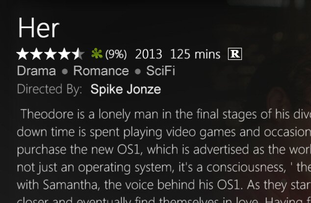 JohnnyM 40 Posted June 19, 2014 Posted June 19, 2014 I noticed the Rotten Tomatoes rating information for the movie "Her" is displaying as 9%. This is consistent across all my movies. That value doesn't make sense to me. The critics rating for this movie is 94 and Audience Meter is 85. Is there an issue with this. Top left corner display attached. Johnny