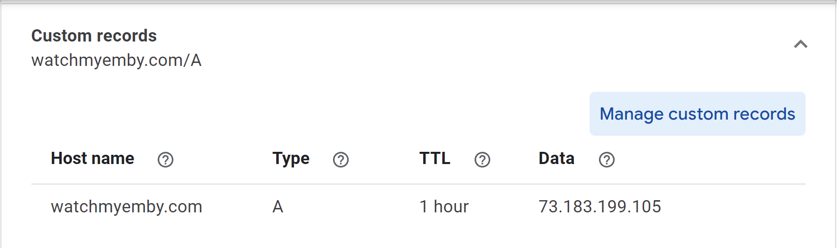 AbnrangerZay 1 Posted October 23, 2021 Posted October 23, 2021 1 hour ago, cayars said: Hi, it's not working for you because your DNS is setup incorrectly. You need an A record with an IP address that points to your WAN IP address. You can verify this does not work by opening a command prompt and trying either: ping zay.watchmyemby.com pin watchmyemby.com neither work because it can't resolve to an IP address. Thanks for the tip. Do I need to, or should I delete the other A record? Here is what I now have: That is my public IP there.