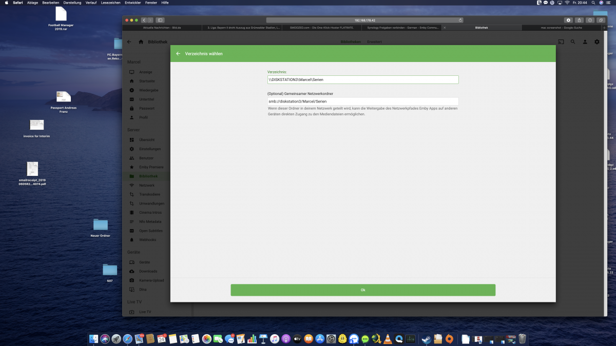 MarcelF1 1 Posted January 24, 2020 Posted January 24, 2020 (edited) Hallo, ich habe gerade unter Debian 9 Emby installiert und versuche nun (bisher erfolglos) meine Multimedia- Ordner in Emby einzubinden, welche sich auf meinem Synology NAS befinden. Könnt Ihr mir sagen, wie ich dabei vorgehen muss um die Freigaben zu verbinden? Bisher erhalte ich immer die Fehlermeldung: "The path could not be found. Please ensure the path is valid and try again." Mir ist außerdem aufgefallen, dass ich nirgends eine Möglichkeit habe um Zugangsdaten für die Serververbindung einzutragen. Liebe Grüße Manuel Hi bin zwar auch relativ neu hier aber ich habe auch meine Ordner auf ner Synology hast du den optionalen Pfad mit smb://Diskstation und dann deinen Ordner angegeben Edited January 24, 2020 by MarcelF1