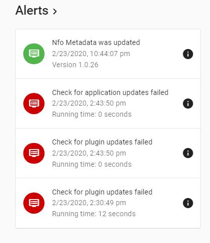 gwujkiw 2 Posted February 24, 2020 Posted February 24, 2020 (edited) I am getting messages in emby server that checks to update have failed: Check for application updates failed Check for plugin updates failed What is the best way to resolve this? I tried restarting server but it didnt help. Edited February 24, 2020 by gwujkiw