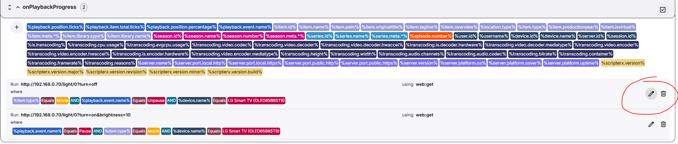 Stan Guiseppe 8 Posted March 29, 2025 Posted March 29, 2025 Hi Anthony, I've just done a fresh install of Emby 4.8.11.0 on DSM 7.2.2. I have installed Emby Scripter X 6.0.0.1. All works except my Pause/Unpause playback events aren't triggering. I have checked my EmbyScripter.xml file against the older version in my old plugins folder on previous Emby server install, and the config is the same. Do you know if something has changed on the Emby side? i.e. event name change? I have also noticed that in ScripterX, I have more than one trigger, and I cannot edit the top one. I can add more and edit them, but the top line remains unresponsive... i.e buttons circled below do nothing - any ideas? Cheers!