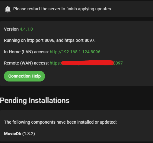 jhoff80 94 Posted April 10, 2020 Posted April 10, 2020 I run my Emby Server as a service, which means no automatic reboots / updates. So frequently, it's got a pending update. As of right now that means that MovieDB is pending an update to 1.3.2. The problem is I'm also running 4.4.1.0 (aka one version behind). Once one component is updated, I stop getting any information in the dashboard about potential other updates. Is there any way that it could still check for updates and display a notice of it, even when it's pending a restart for other updates?