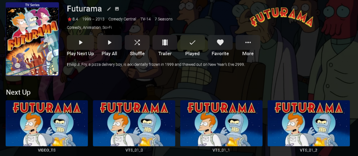 Carlo 4560 Posted July 29, 2020 Posted July 29, 2020 @cayars Yea, that's what I ended up doing Luke. \Futurama (1999)\Season 1\s01e01\VIDEO_TS\ was the format I used. Inside the video_ts directory I had: VIDEO_TS.BIP VIDEO_TS.IFO VTS_01_0.BPU VTS_01_0.IFO VTS_01_1.VOB VTS_01_2.VOB This is what scanned in the system No match to S01E01 but it also used files that aren't video files as well.