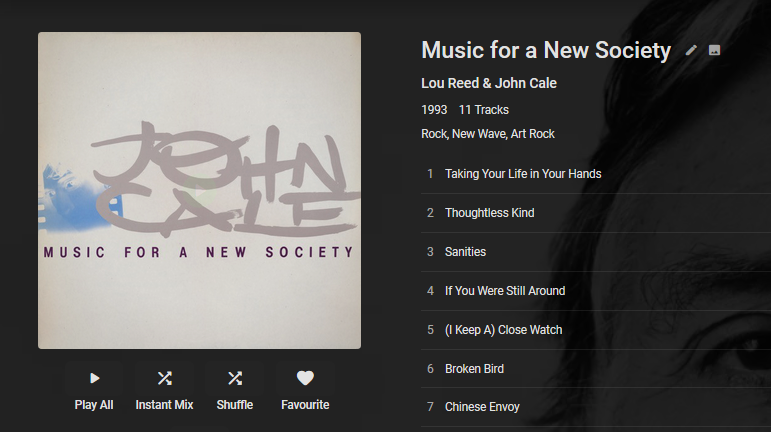 oceanclub 12 Posted April 28, 2020 Posted April 28, 2020 There's an odd issue with the way that Emby tags some music I have (which is correctly tagged). For example, I've added some John Cale albums - specifically, Paris 1919 and Music for a New Society. I also have an album already added, John Cale & Lou Reed's Songs for Drella. Now, those solo John Cale albums show up with the artist set to "John Cale & Lou Reed" even though their metadata has them as solo albums. The genres are shown exactly as tagged so Emby is getting those directly from the metadata but seems to be retrieving the album artist incorrectly. Any help appreciated, P