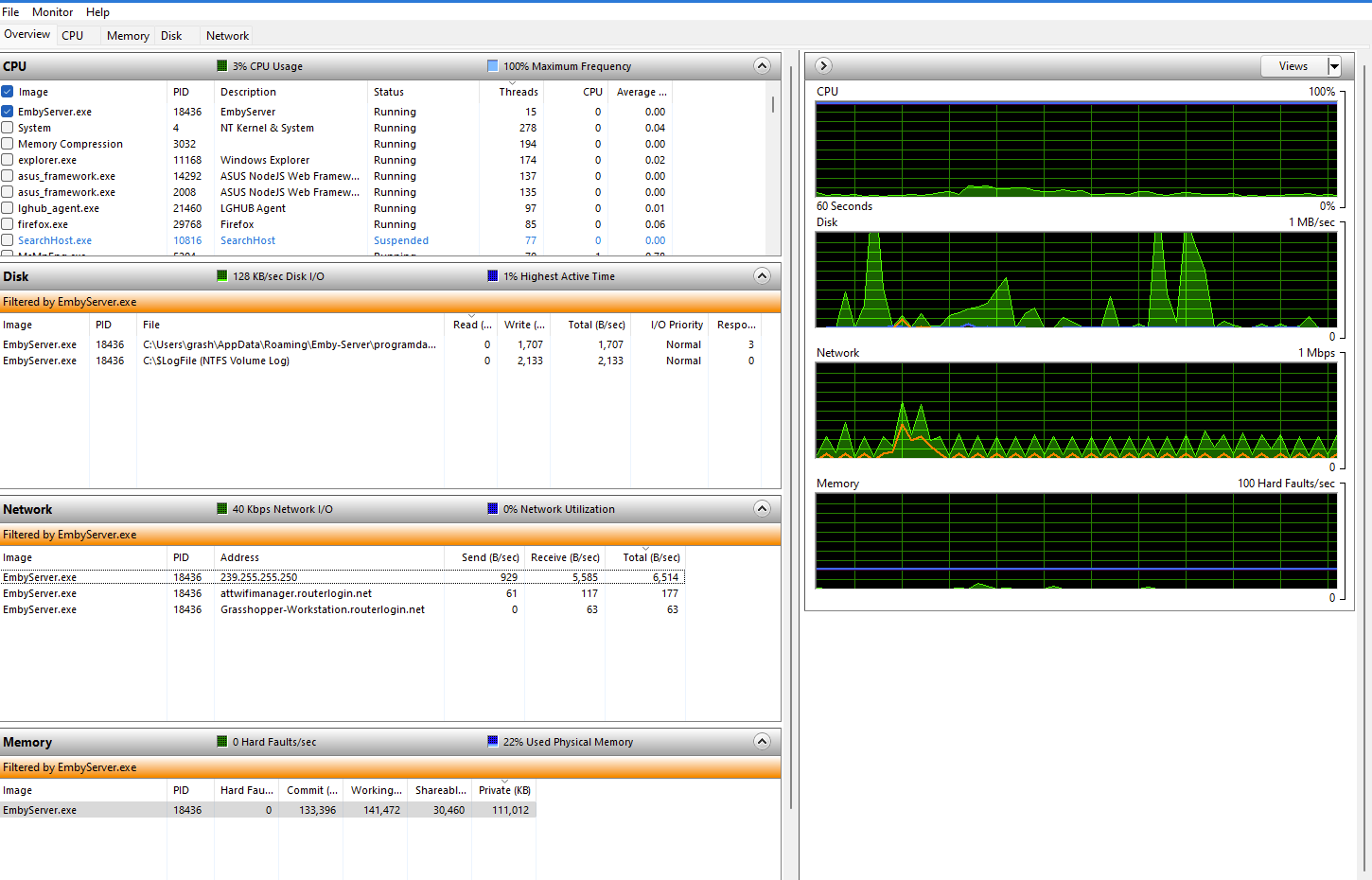Grashopr 0 Posted March 23, 2022 Posted March 23, 2022 15 hours ago, Luke said: Does your Emby Server dashboard display the correct local and remote addresses? If you mean in the settings area of the server... I'm not sure what you mean by 'correct' address. The address listed there is is shown here: For some reason, on the server PC this morning, I clicked on the LAN address and it took me into Emby... however, it took a LONG TIME to get to the home screen. Over 3 minutes. And that is on the same PC that the server is running on. When I click into the Emby Server, it goes into an LMLicenses.wip4.adobe.com communication for some reason for about a minute.. then that connection dies out. However, I'm constantly connected to 239.255.255.250. Why Emby would be connecting to an adobe server is beyond me.. I'm getting no hard fault spikes on startup or update.. My router for some reason keeps maintaining a connection.. I assume that is one of the ROKU's attempting to wake the server. Any other ideas?