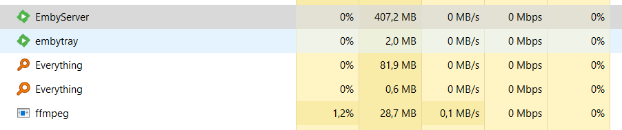 Teddy 100 Posted May 22, 2020 Author Posted May 22, 2020 (edited) Luke, I have removed the plug-ins but the slowness has not improved. The PC where Emby Server is installed has all the prerequisites to function well....i7,32 GB memory, 4GB memory video, a 1GB M.2 and 600 Mb speed internet. But the CPU and memory consumption that Emby makes I think it is very little.Can I modify any Emby Server file so that it uses all the ram and cpu that needs? (As you can see in the log, fetching a movie it takes a long time) (I forgot to say that the antivirus has it disabled in case it could influence.) embyserver.txt Edited May 22, 2020 by Teddy