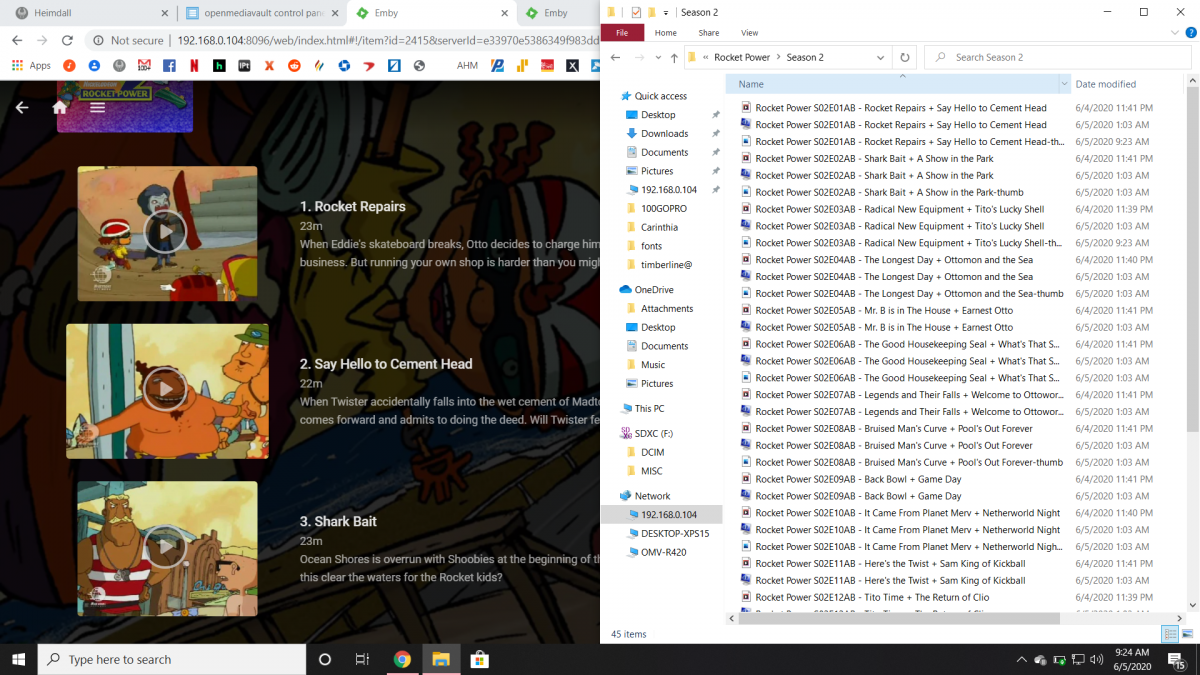 cr0wbaar 0 Posted June 5, 2020 Posted June 5, 2020 (edited) I recently downloaded some old nickelodeon cartoons like Rocket Power and Rugrats but am having some problems with the meta data. Back in the day, these cartoons would play as back to back 10-15 min eps. This is how they are on my computer as well, 1 file, 2 episodes. When I uploaded them on emby, it seems the meta data is separating everything into single eps even though they are double. I've attached a screen shot showing both the location of the actual files with their naming of both episodes, and the emby server, which is currently mislabeling them. In my screenshot, for example, the episode 1 file on my computer contains the episodes "Rocket Repairs + Say Hello to Cement Head" but in my emby, it separates them, but what it is really doing is labeling the episode 2 file, which on my computer is "Shark Bait + A Show in the Park" as "Say Hello to Cement Head" even though that is part of the first episode. Is there anyway to find the correct meta data for this or will I have to change them all manually? Edited June 5, 2020 by cr0wbaar