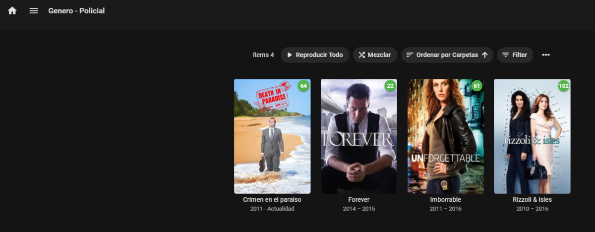 LeidenSpain 33 Posted June 30, 2020 Author Posted June 30, 2020 Hello, I've finally found where the problem is Emby is not able to display GDrive libraries well from 4 subfolders, but if they have less, or are on a local disk This is my original configuration: Look, the local disk is working with 5 subfolders: MNT + SERVER_MEDIA + SERVER_MEDIA + ANIA + SERIES And ths GDrive with 5: MNT + GDRIVE + SERIES + NO INFANTIL + POLICIAL Now, using a structure with only 4 subfolders, it's working: But I repeat: emby DOES see folders, and it can access them in folders view. The problem is that it does not show them in the SERIES view
