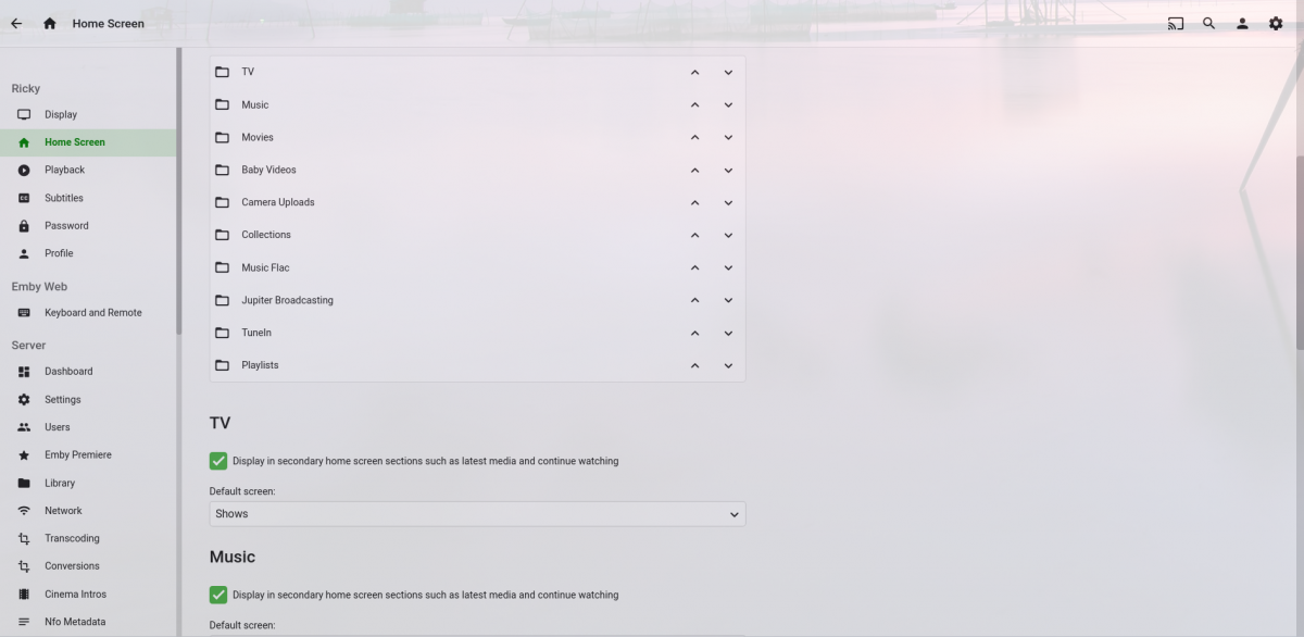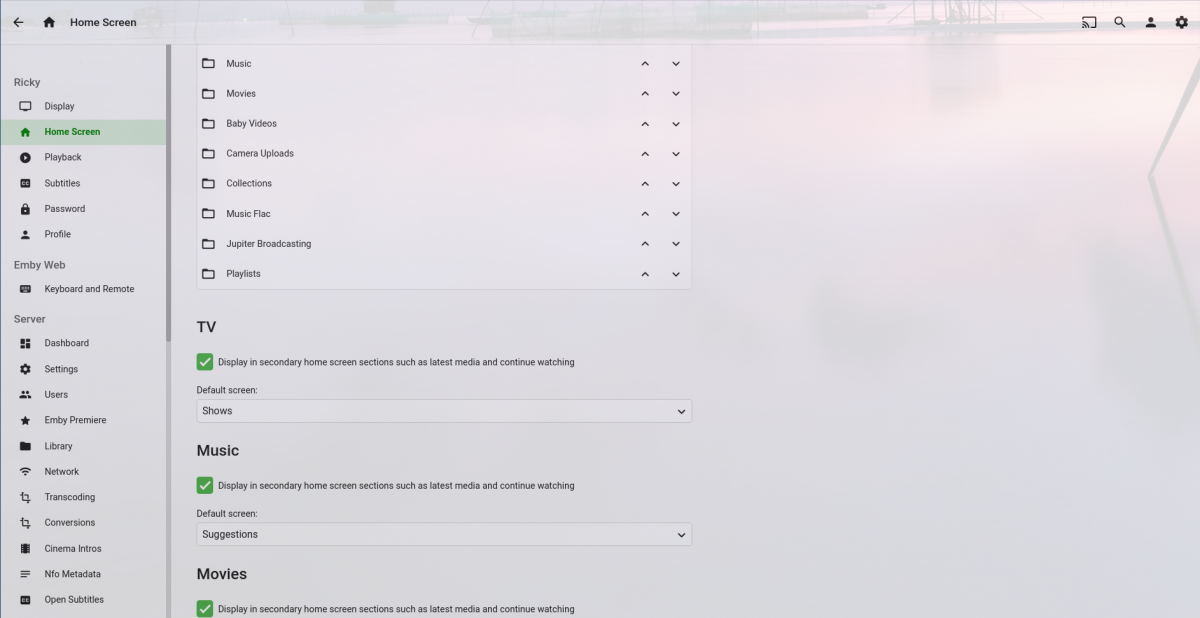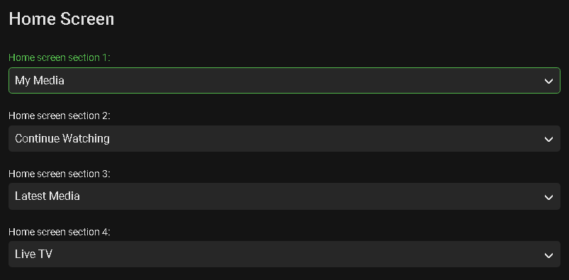 ebr 16184 Posted June 28, 2020 Posted June 28, 2020 So what are you expecting to be seeing that you are not? I notice you did not select "My Media" for any of the sections, so your library listing is not going to show up there. 1