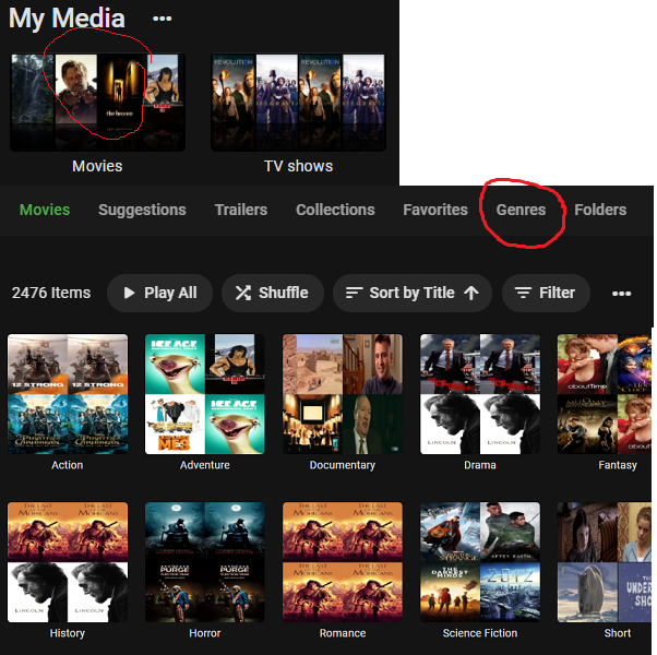 MTBadDog 1 Posted June 23, 2020 Author Posted June 23, 2020 From the home screen under "My Media", Movies -> genre.