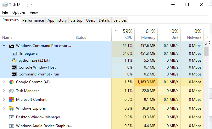 Carlo 4561 Posted June 27, 2020 Posted June 27, 2020 If you drill down on the CPU is it ffmpeg hogging them?