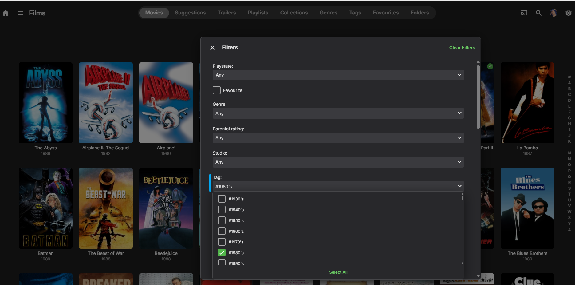 rbjtech 5284 Posted June 4, 2024 Posted June 4, 2024 (edited) On 02/06/2024 at 16:35, d00zah said: ~4 yrs gone & little has changed. Just looked at sorting movies by year (or release date) & w/ out a jump list (a la alpha picker), navigating a sizeable movie library is quite tedious scrolling down the list. Yes, there may be filters available (slightly less tedious, year, no decade), but they must be cleared/reset next time one views the library w/ a different intent. Is it truly that difficult to implement? Have to agree - really not sure why this has taken so long to implement. People simply like to look for movies by 'generation or decade'. I added my own code (took about 5 minutes) to the mediaInfo plugin to tag each movie with a 'decade' tag - now at least I can filter by decade - but it would have been nice to simply use the 'Sort by Year' with an 'decade picker' on the side to jump to the pre-filtered items. I'm sure the coding guru's would have this done in a few lines (I'm not a dev..) - but this is all I added to create the basic functionality as tags .. ... string getyearstring = DateTime.Parse(item.PremiereDate.ToString()).Year.ToString(); getyearint = Int16.Parse(getyearstring); if (getyearint > 1929 && getyearint < 1940) { Log.Debug("Writing Tag Decade = #1930's : Actual Year = {0}", getyearint); decade = "#1930's"; tempList.Add(new LinkedItemInfo { Name = "#1930's" }); } if (getyearint > 1939 && getyearint < 1950) { Log.Debug("Writing Tag Decade = #1940's : Actual Year = {0}", getyearint); decade = "#1940's"; tempList.Add(new LinkedItemInfo { Name = "#1940's" }); } if (getyearint > 1949 && getyearint < 1960) { Log.Debug("Writing Tag Decade = #1950's : Actual Year = {0}", getyearint); decade = "#1950's"; tempList.Add(new LinkedItemInfo { Name = "#1950's" }); } if (getyearint > 1959 && getyearint < 1970) { Log.Debug("Writing Tag Decade = #1960's : Actual Year = {0}", getyearint); decade = "#1960's"; tempList.Add(new LinkedItemInfo { Name = "#1960's" }); } if (getyearint > 1969 && getyearint < 1980) { Log.Debug("Writing Tag Decade = #1970's : Actual Year = {0}", getyearint); decade = "#1970's"; tempList.Add(new LinkedItemInfo { Name = "#1970's" }); } if (getyearint > 1979 && getyearint < 1990) { Log.Debug("Writing Tag Decade = #1980's : Actual Year = {0}", getyearint); decade = "#1980's"; tempList.Add(new LinkedItemInfo { Name = "#1980's" }); } if (getyearint > 1989 && getyearint < 2000) { Log.Debug("Writing Tag Decade = #1990's : Actual Year = {0}", getyearint); decade = "#1990's"; tempList.Add(new LinkedItemInfo { Name = "#1990's" }); } if (getyearint > 1999 && getyearint < 2010) { Log.Debug("Writing Tag Decade = #2000's : Actual Year = {0}", getyearint); decade = "#2000's"; tempList.Add(new LinkedItemInfo { Name = "#2000's" }); } if (getyearint > 2009 && getyearint < 2020) { Log.Debug("Writing Tag Decade = #2010's : Actual Year = {0}", getyearint); decade = "#2010's"; tempList.Add(new LinkedItemInfo { Name = "#2010's" }); } if (getyearint > 2019 && getyearint < 2030) { Log.Debug("Writing Tag Decade = #2020's : Actual Year = {0}", getyearint); decade = "#2020's"; tempList.Add(new LinkedItemInfo { Name = "#2020's" }); } if (getyearint > 2029 && getyearint < 2040) { Log.Debug("Writing Tag Decade = #2030's : Actual Year = {0}", getyearint); decade = "#2030's"; tempList.Add(new LinkedItemInfo { Name = "#2030's" }); Edited June 4, 2024 by rbjtech 1