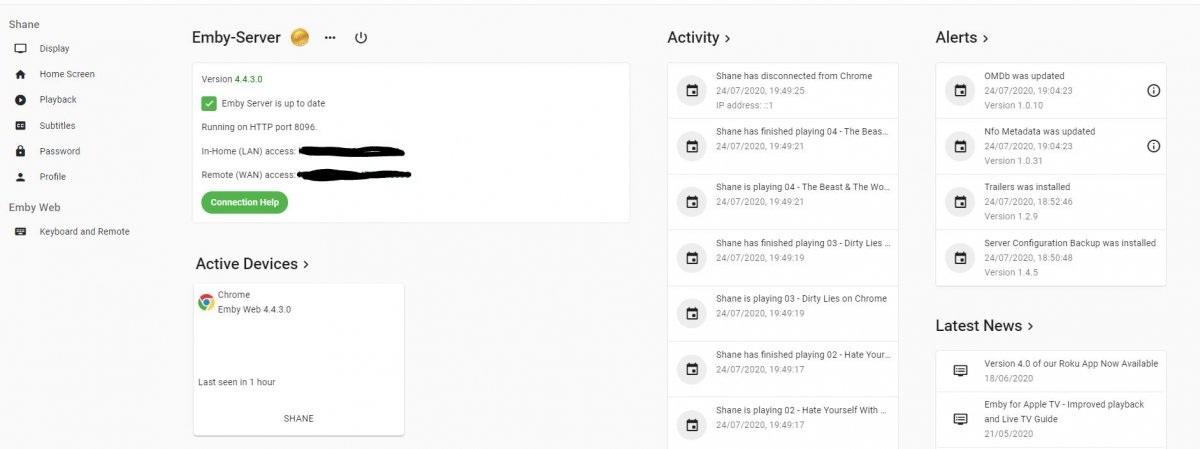 austie 4 Posted July 24, 2020 Posted July 24, 2020 I recently lost my emby server and file shares when my media server box died. I have since replaced it with a standalone desktop and luckily I had backups that I could restore from for the configuration. After getting emby back up and running and then restoring some backups I've been having all sorts of problems in trying to get it to re-scan network shares that previously worked fine as well as accessing parts of the system. I've attached a screen shot of what I see in the dashboard. Any help would be greatly appreciated as I have never encountered this issue previously when migrating servers. Only difference is that the computer is Windows 10 version 2004 so I'm wondering if that's part of the issue?