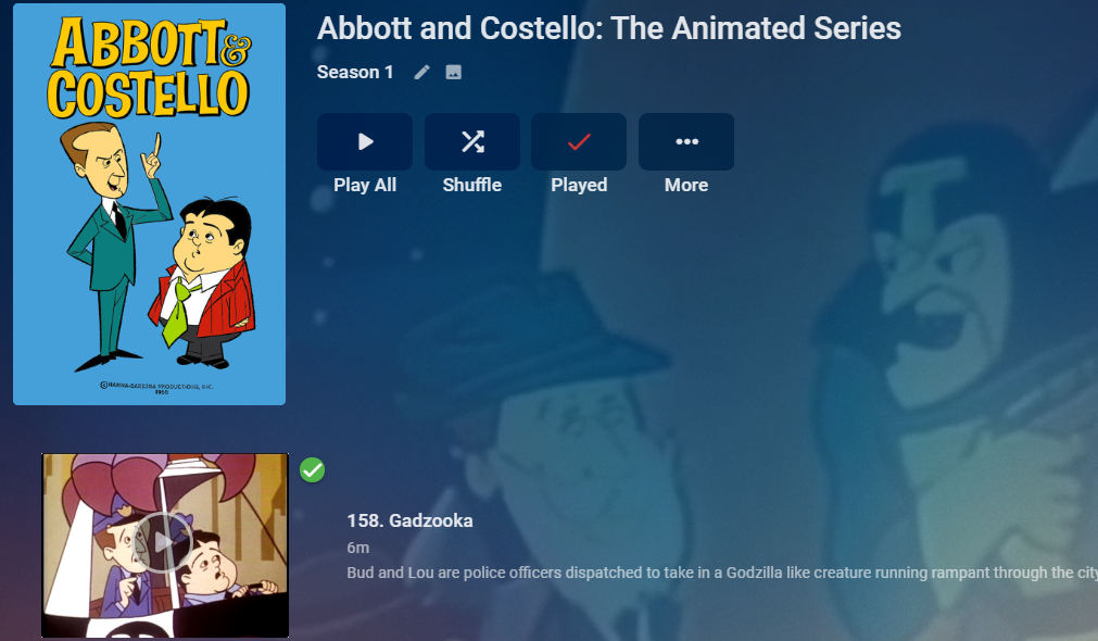 MBSki 1114 Posted July 26, 2020 Posted July 26, 2020 I can't figure out why this particular show, "Abbott & Costello: animated series" doesn't show any missing episodes. TheTVDB has all the shows listed, but they don't appear in Emby. Other shows in the same library have the missing episodes, just not this one. I've refreshed metadata, pulled the files out of the directory put them back and rescanned, used Identify to make sure it was using the correct show, and checked all the providers, but still can't figure it out. Any ideas? TheTVDB episode list