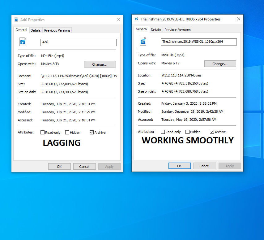 FSNTube 1 Posted August 1, 2020 Posted August 1, 2020 Hello, I have an issue with some on my movies, the issue is that some of my movies are lagging while we play them on any device other than a PC. i tried to play on IOS and on ANDROID and on SMART TVS, the movie lags too much and we cannot watch it. I checked the resource monitor of my emby server, all is normal, nothing is high. I have attached the details of 2 movies, one is very lagging and the other is playing very smoothly. NB: I changed the emby server to a better performance server. ( i attached the specs of the emby server )NB: I am playing both movies with CC OFF NB: If i decrease the quality of the movie that is lagging to less than 1080 ( ANY QUALITY 720 and less ) the video plays smoothly, while on other movies i can play up to 1080 60MBPS and the movie wont lag. NB: I AM NOT FACING ANY OF THESE PROBLEMS IF I PLAY FROM MY PC ( WEB ) I have Emby Premiere on my server activated. Emby server version : 4.4.3.0 Also emby app on all devices has the latest update installed. Please can anyone help me with this issue ? Thanks
