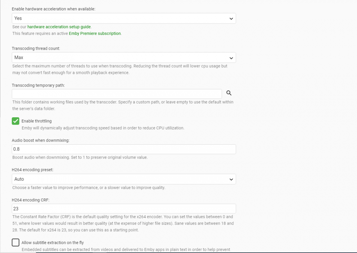 FSNTube 1 Posted August 1, 2020 Author Posted August 1, 2020 7 minutes ago, FSNTube said: I set Enable hardware acceleration when available: NO Enable throttling : OFF Why some movies isn't direct playing and is being transcoded while others is playing without transcodin ?? Is there a way to make all movies play without transcoding ? can i convert them in any way ? PS: I am an IT , i dont know anything about transcoding and media stuff... By the way , its still lagging i forgot to tell you that.