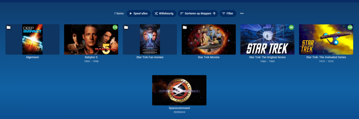 aarbee 6 Posted August 1, 2020 Author Posted August 1, 2020 Thank you for taking your time, to answer my question. You write, you add the first episode and check for errors. The errors appeared after I added Season 1. Now I see that StarTrek is mixing up TOS and Animated, when I put everyting one Level up. I was afraid to get to many stuff on the mainpage. But I saw that I was also getting the issue With Documentaries. Below you can See that I did split the General Science Fiction up into 3 sections. I only have the issue with TOS. Sometimes I think, that an issue arrises when the directory structure is too deep. I am playing with Emby and Plex for some time, but now that I am filling it with my ripped DVD's I see the problems arising. Emby seems to have more in that regard then Plex. Plex has other issues too (in one of their features they want to know to much about what I am running on my media server. Not that it is illegal content, as all come from my own dvd and blue-ray, but they should not ask). RobB