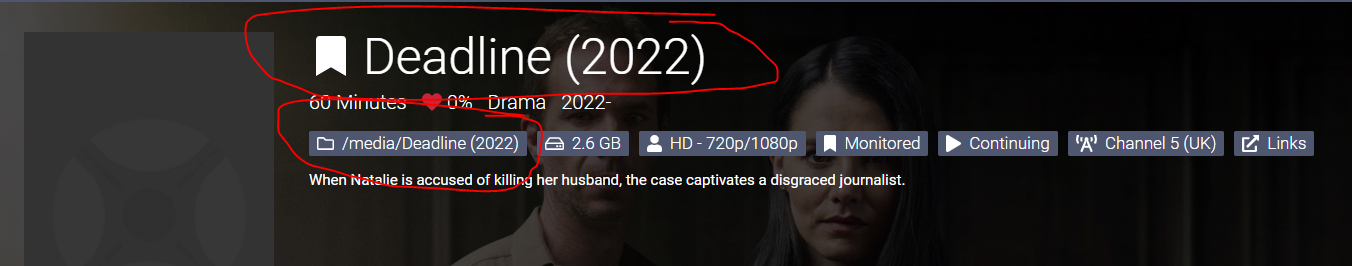 vaise 340 Posted April 9, 2022 Posted April 9, 2022 (edited) 10 hours ago, GiGo said: This technically isn't a bug, the show is identified on TVDB as 'Deadline (2022)' as the Original 'Deadline' is 2008 so will appear as Deadline (2008) any other version will be identfied as Deadline (year) (year), this happens to lots of shows that are remakes, to name but a few; Call the Cops (2019) (2019) Are You Afraid of the Dark (2019) (2019) A Fine Romance (1981) (1981) Around the World in 80 Days (2021) (2021) Same show, re-added via sonarr - shows season without the extra year - so I am pretty sure this is an auto organise thing and not 'normal' (I also have around the world in 80 days and this was also added correctly with sonarr)Â : Edited April 9, 2022 by vaise