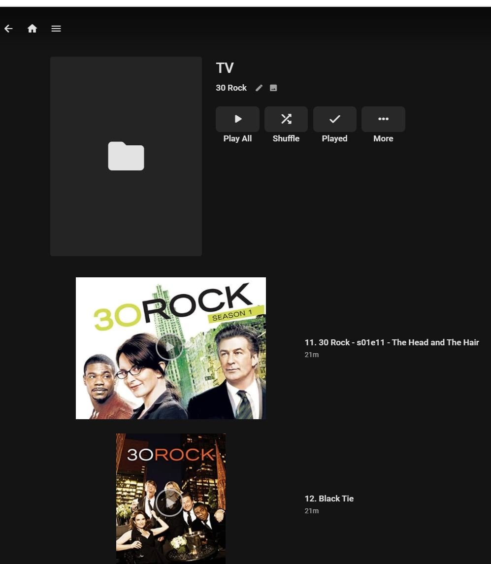 adamzune 2 Posted August 20, 2020 Author Posted August 20, 2020 (edited) 27 minutes ago, cayars said: Setup a TV Library pointing to a fresh location. Do nothing with it yet. Now show up (take a screenshot) of what you TV shows look like on disc. Are you following the naming convention from our knowledge base? https://support.emby.media/support/solutions/articles/44001159110-tv-naming Hi, the naming convention is correct, i have just moved the 30 rock folder into a new TV folder (within the Video library) and it appears as it should. i then copied all of my folders over and it went back to what you see above. so now i am going to move stuff folder by folder to try and find out which folder is causing me the issues, Edited August 20, 2020 by adamzune add picture
