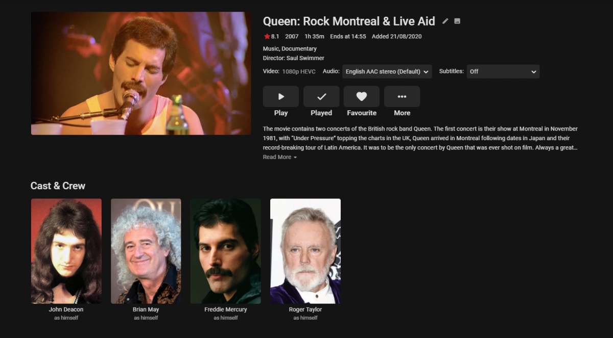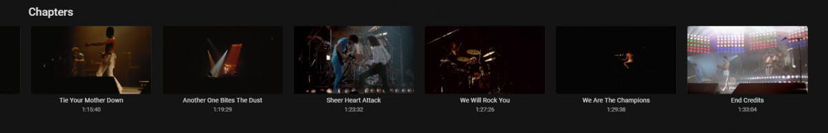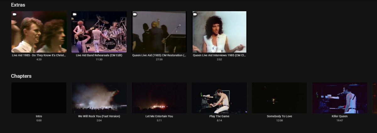 rbjtech 5284 Posted August 21, 2020 Posted August 21, 2020 (edited) See the post #3 from Paul - this is effectively no different to a movie with chapters. Convert the ISO to MKV but keep the chapter points. They should exist as that is generally what the Blu-Ray 'Menu' uses to jump to. The key is the naming of the chapters - if the Blu-Ray has been authored with song 'names' as the chapter points - then you are good to go - but if you find they are called 'Chapter 1, Chapter 2' etc - then you just need to rename them in something like mkvtoolnix to match the song title. Hassle I agree - but you'll then get a 'menu' as such listed when you open the chapter points and you can then pick the song you like to jump to. So as an example - ..if I scroll down .. .. I can see and play the 'Extras' that were being discussed in this thread and jump to 'chapters'/song titles if I so wish .. .. scrolling left/right shows me all the chapters/songs .. This is achieved by renaming the chapters correctly in the MKV. This is what mediaInfo shows for the above - I hope that helps - yes it's not as fancy as the Blu-ray menu - but it keeps navigation in-line with the rest of Emby and is functional. Edited August 21, 2020 by rbjtech 1