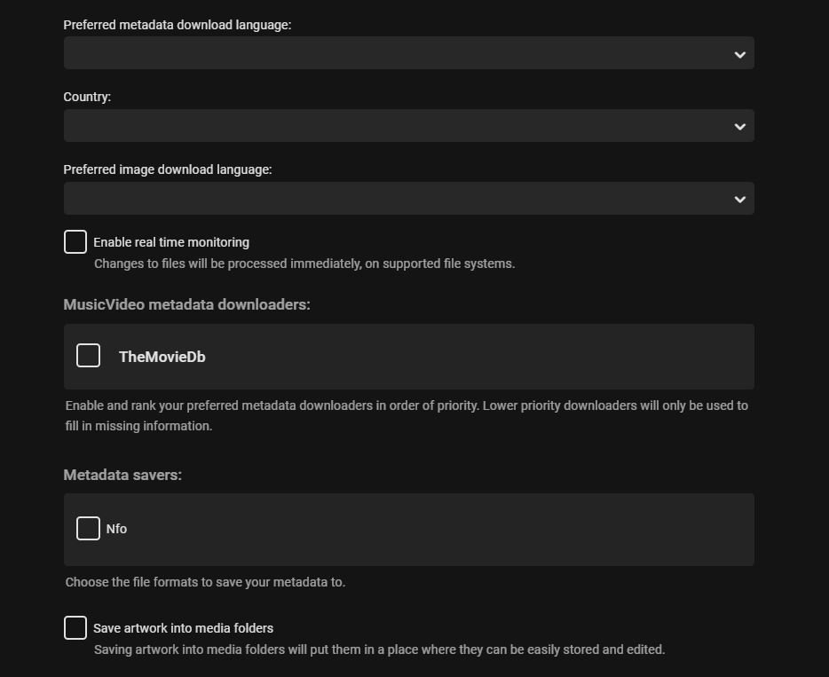 jbaggs 2 Posted August 24, 2020 Author Posted August 24, 2020 3 hours ago, cayars said: I don't see any music directories in your log. This is all Emby is watching: 2020-08-23 16:17:01.749 Info LibraryMonitor: Watching directory D:\video\TV 2020-08-23 16:17:01.749 Info LibraryMonitor: Watching directory D:\video\Docuseries 2020-08-23 16:17:01.749 Info LibraryMonitor: Watching directory D:\video\Movies I just thought of something - what does real time monitoring have to do with the tags not being read properly, album art disappearing\reappearing, track listing disappearing\reappearing?