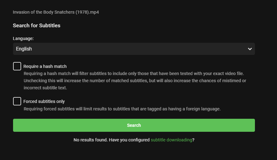 Spocks_Logic 3 Posted August 24, 2020 Posted August 24, 2020 Hello Community! I've been having issues with subtitles the last few weeks. For the longest time it worked just as planned and I've added new movies to my library and it isn't automatically getting the subtitles. However, my real issue is that when I try to manually get the subtitles it says that there are none found. If I do a search on Open Subtitles there is 161 hits. Is the service down? <Screenshot attached> Also, I have provided screen shot of my setup for my Movies library as well. Any advice or tips the community can provide would be amazing, my wife and I love to watch everything with subs! Thanks!