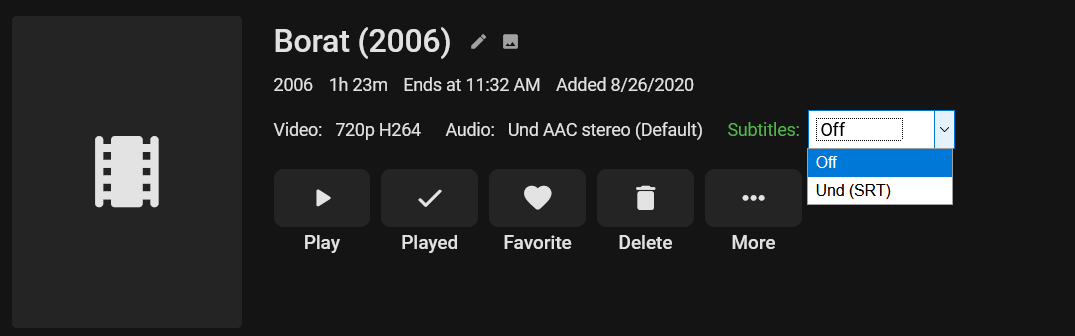 asdffdsa1 1 Posted August 26, 2020 Author Posted August 26, 2020 i see that for the video, there is a drop box labeled 'subtitles' and default is off. if i click the dropbox and select the srt file, play the video, still no with vlc. if i refresh the emby web interface, the dropbox is off, does not seem to remember i selected the srt thanks,