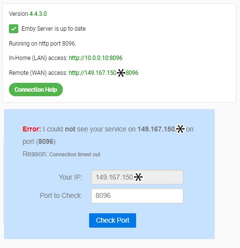Carlo 4561 Posted September 1, 2020 Posted September 1, 2020 (edited) 30 minutes ago, EVDEADSHOT said: This site can’t be reached 149.167.150.* took too long to respond. Try: Checking the connection Checking the proxy and the firewall Running Windows Network Diagnostics ERR_CONNECTION_TIMED_OUT This is what I expected. Either forwarding is not working correctly or your router doesn't support loop back. Let's start by simplifying a couple of things and doing what Happy2Play mentioned. Your not using SSL so let get rid of 8920 forwarding. Let's do this the easy way by removing the port mapping plugin from Emby. You don't need this as you've manually forwarded port 8096. Remove the plugin, restart Emby. Then reset your router. After this retry the above test (right click on remote and open in new tab). Any progress? Edited September 1, 2020 by cayars 1