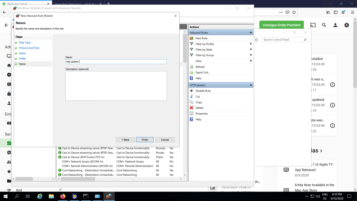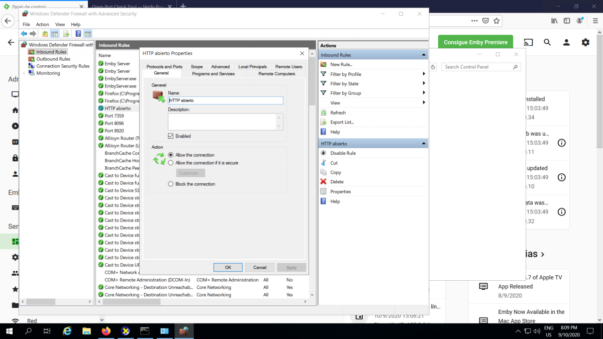 Administra 1 Posted September 11, 2020 Author Posted September 11, 2020 13 minutes ago, cayars said: Do me a favor and try this. Open port 8096 on your router and set the remote port back in Emby to 8096. Does this work? I already tried and nothing works, brother, I opened the other entrance of the port and it always gives me error of to connect, this is the port that I opened