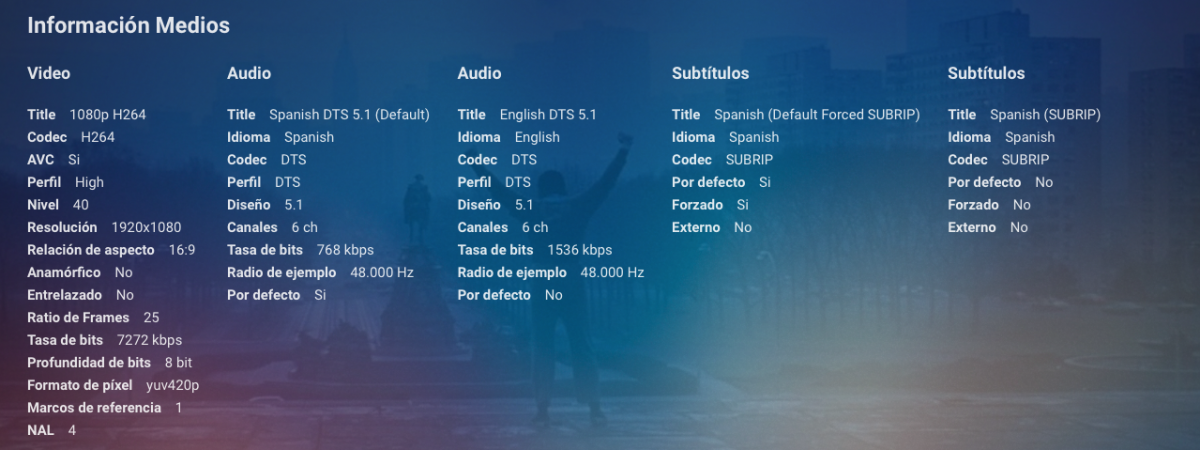 vdatanet 1618 Posted September 21, 2020 Author Posted September 21, 2020 6 minutes ago, cayars said: Well that clearly shows it being interlaced. vdatanet can you drop to the command line and run a "ffmpeg -i filename" and see if it say's it's interlaced or not? joan@embysrv:/media/movies/Saga Rocky [MicroHD][1080 px][-DTS-AC3 5.1-Castellano-Ingles+Subs]$ ffmpeg -i rocky\ 2.mkv ffmpeg version 4.2.4-1ubuntu0.1 Copyright (c) 2000-2020 the FFmpeg developers built with gcc 9 (Ubuntu 9.3.0-10ubuntu2) configuration: --prefix=/usr --extra-version=1ubuntu0.1 --toolchain=hardened --libdir=/usr/lib/x86_64-linux-gnu --incdir=/usr/include/x86_64-linux-gnu --arch=amd64 --enable-gpl --disable-stripping --enable-avresample --disable-filter=resample --enable-avisynth --enable-gnutls --enable-ladspa --enable-libaom --enable-libass --enable-libbluray --enable-libbs2b --enable-libcaca --enable-libcdio --enable-libcodec2 --enable-libflite --enable-libfontconfig --enable-libfreetype --enable-libfribidi --enable-libgme --enable-libgsm --enable-libjack --enable-libmp3lame --enable-libmysofa --enable-libopenjpeg --enable-libopenmpt --enable-libopus --enable-libpulse --enable-librsvg --enable-librubberband --enable-libshine --enable-libsnappy --enable-libsoxr --enable-libspeex --enable-libssh --enable-libtheora --enable-libtwolame --enable-libvidstab --enable-libvorbis --enable-libvpx --enable-libwavpack --enable-libwebp --enable-libx265 --enable-libxml2 --enable-libxvid --enable-libzmq --enable-libzvbi --enable-lv2 --enable-omx --enable-openal --enable-opencl --enable-opengl --enable-sdl2 --enable-libdc1394 --enable-libdrm --enable-libiec61883 --enable-nvenc --enable-chromaprint --enable-frei0r --enable-libx264 --enable-shared libavutil 56. 31.100 / 56. 31.100 libavcodec 58. 54.100 / 58. 54.100 libavformat 58. 29.100 / 58. 29.100 libavdevice 58. 8.100 / 58. 8.100 libavfilter 7. 57.100 / 7. 57.100 libavresample 4. 0. 0 / 4. 0. 0 libswscale 5. 5.100 / 5. 5.100 libswresample 3. 5.100 / 3. 5.100 libpostproc 55. 5.100 / 55. 5.100 Input #0, matroska,webm, from 'rocky 2.mkv': Metadata: title : www.descargaya.es encoder : libebml v1.2.3 + libmatroska v1.3.0 creation_time : 2012-12-19T13:57:29.000000Z Duration: 01:59:10.99, start: 0.000000, bitrate: 7283 kb/s Stream #0:0(spa): Video: h264 (High), yuv420p, 1920x1080 [SAR 1:1 DAR 16:9], 25 fps, 25 tbr, 1k tbn, 50 tbc (default) (forced) Metadata: title : www.descargaya.es Stream #0:1(spa): Audio: dts (DTS), 48000 Hz, 5.1(side), fltp, 768 kb/s (default) (forced) Metadata: title : www.descargaya.es Stream #0:2(eng): Audio: dts (DTS), 48000 Hz, 5.1(side), fltp, 1536 kb/s Metadata: title : www.descargaya.es Stream #0:3(spa): Subtitle: subrip (default) (forced) Metadata: title : www.descargaya.es Stream #0:4(spa): Subtitle: subrip Metadata: title : www.descargaya.es Stream #0:5(eng): Subtitle: subrip Metadata: title : www.descargaya.es