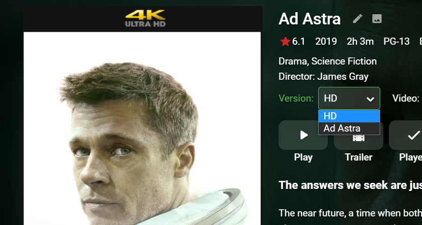 BorgSquared 2 Posted January 3, 2021 Author Posted January 3, 2021 It shows up in the version selection for the media details page. I have an "HD" folder sync so it shows up as HD in version selection after conversion.