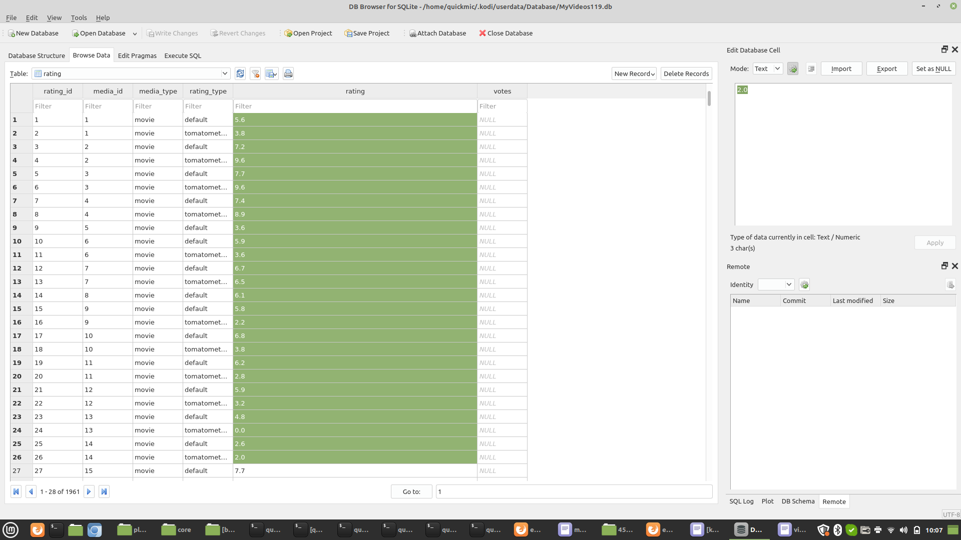quickmic 1703 Posted September 17, 2021 Author Posted September 17, 2021 6 minutes ago, MAForshaw said: Just like a user a few posts up, I use "Light IMDb Ratings Update" to auto-update the IMDB ratings and "VoteCount" so I don't need that. Are you saying that if I enable User Rating then that will fix the "tomatometerallcritics" range as stored in the database, see screenshot? I don't say anything, cause I'm not using such addons. I can offer to disable the rating also for Kodi's rating table and not only the "movie rating tag". I have no idea, how it affects "Light IMDb Ratings Update".