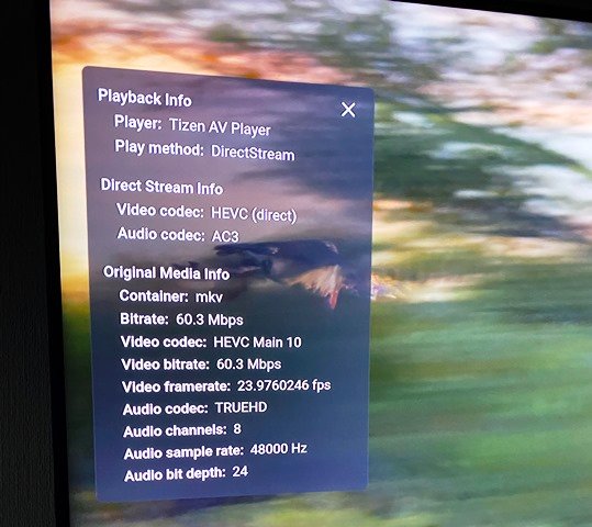 FrostByte 5392 Posted January 1, 2021 Posted January 1, 2021 Direct Streaming is almost always when audio only is converted to something the Samsung TV supports and the video part is unconverted and sent as is. If you display Stats for Nerds within the Samsung app it should tell you what is being converted and why As SamES pointed out you will get best results by selecting an audio codec which the TV supports before clicking Play. Since TrueHD isn't listed in the chart below and AC3 is then just select the AC3 beforehand. Either way you will be getting AC3 in the end https://developer.samsung.com/smarttv/develop/specifications/media-specifications/2020-tv-video-specifications.html#20TV_PREMIUM(UHD)