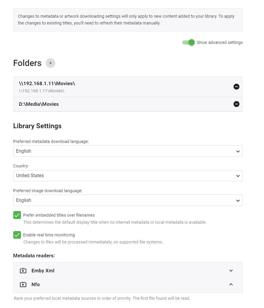 edeyzel 0 Posted October 19, 2020 Posted October 19, 2020 (edited) Hi, I have 2 movie library's one on local to the Emby server and one on a share. For some reason for the last month or so nothing added to the local drive is being picked up and I have to move the files over to the share before Emby sees them. I have removed and readded the library, rebooted, updated etc. and nothing works. Does anyone have an idea what is going on here. Thanks in advance. Edit: Emby Server is running on Win Server 2019 Std. Edited October 19, 2020 by edeyzel More Info