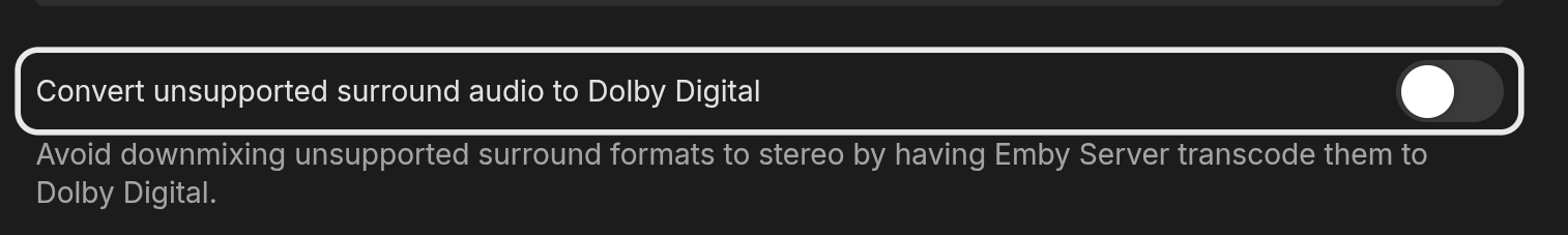 Richard Branches 330 Posted February 12 Author Posted February 12 I guess it's just a matter of adding the "Convert unsupported surround audio to Dolby Digital" option already available on the Android app so I can turn it off: